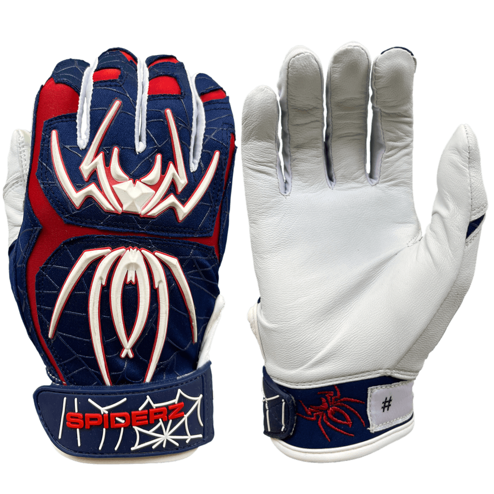 The new Navy Blue, Red, and White Spiderz Endite Batting Gloves offers an extremely upgraded Palm with the old school Hybrid Top hand that we’ve all grown to love. All of our Spiderz Batting Gloves ship fast and free.Â