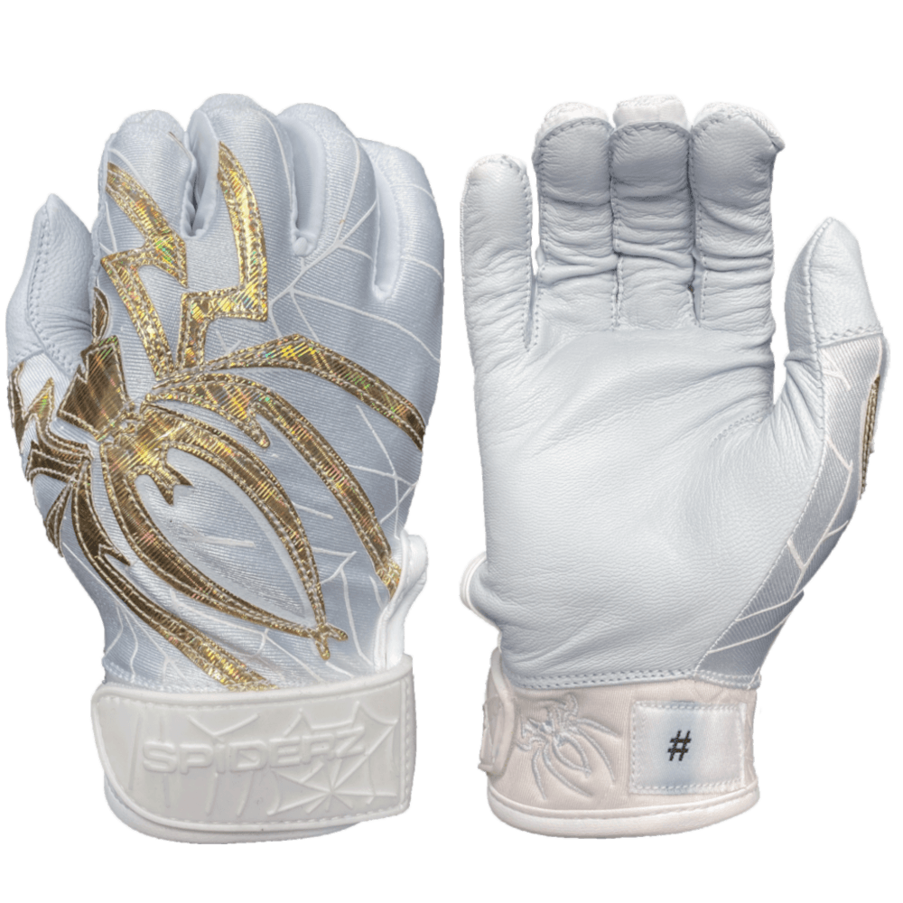 Introducing the Limited Edition ’22 PRIZM series Spiderz Batting Gloves featuring a smooth & soft leather palm, flexible polyester top hand fit, triple reinforced wrist strap and Spiderz logo in a light refracting prism material.Â