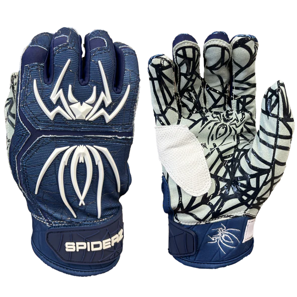 These 2023 Spiderz HYBRID Batting Gloves: Navy/Gold models are available from Youth Medium to Adult 2XL and ships fast and free right here at headbangersports.com! Â