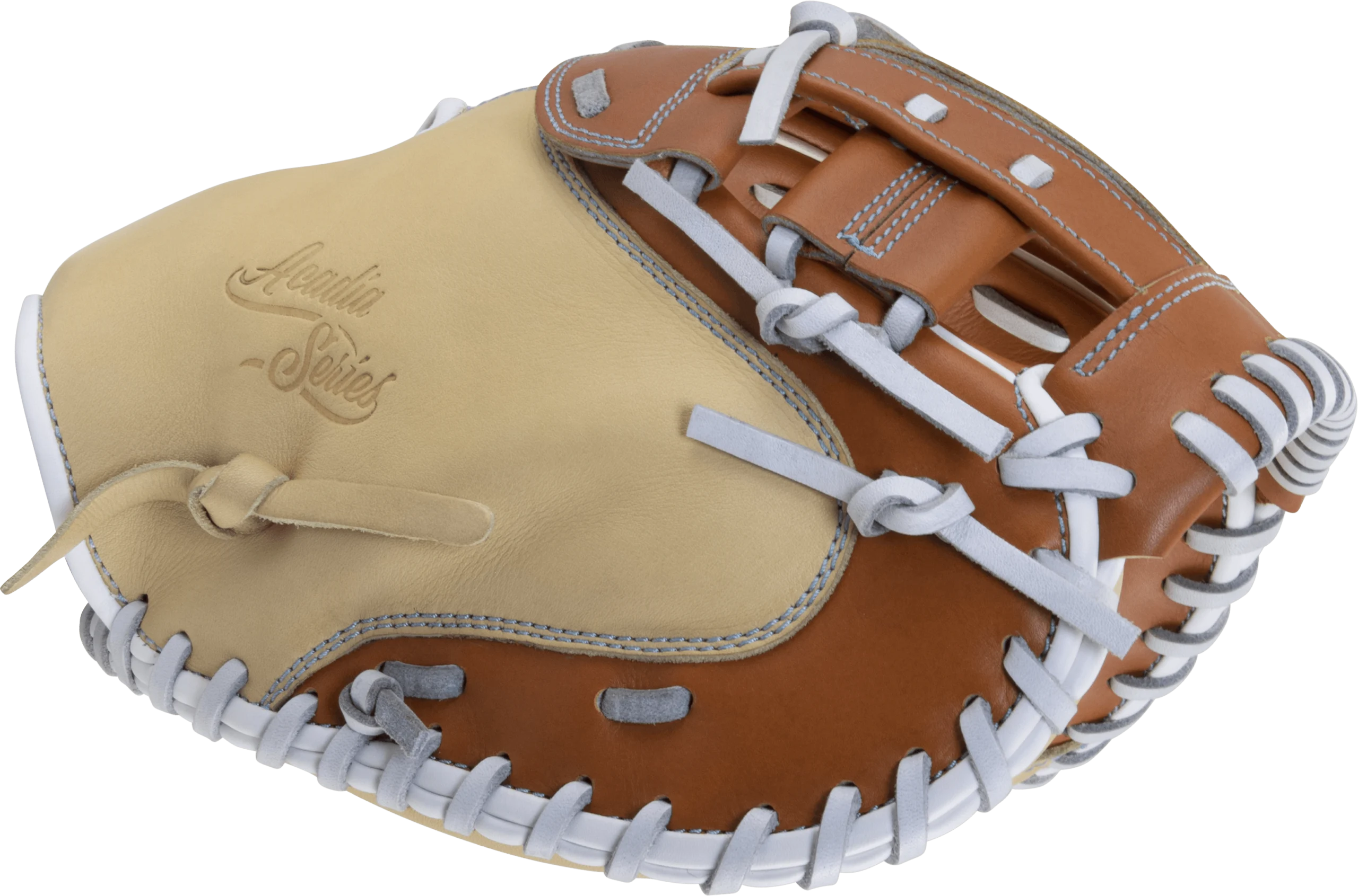 The Marucci Acadia M Type 230C2FP Softball Catcher’s Mitt features a 33″ glove length, H-Web, deep pocket, and is available in Right Hand Throw only.Â